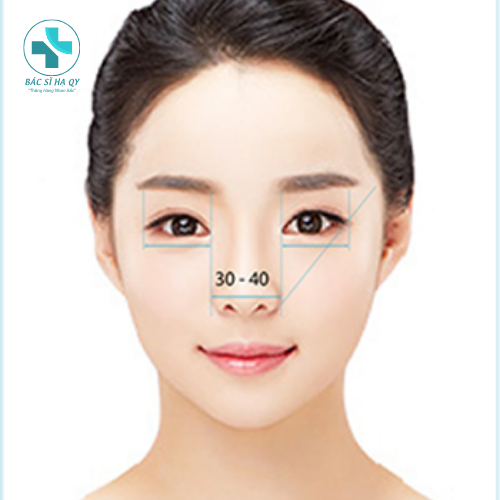 – Mũi: Độ cong của sống mũi so với trán tạo thành một góc 120độ-135độ, khi đó mũi sẽ có độ lài hài hoà với trán, không bị trường hợp mũi quá cao hay cao bằng trán. Độ dài này thường bắt đầu tại đường thẳng nối ngang đường dưới chân mày