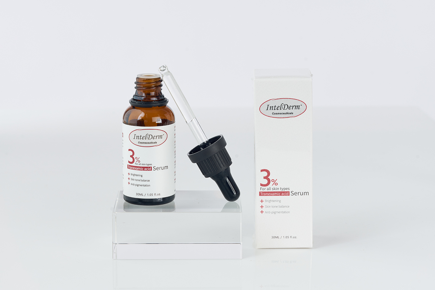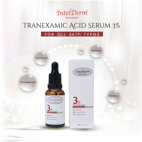 Serum dưỡng ẩm trắng da IntelDerm Tranexamic Acid 3% là sản phẩm chứa Tranexamic Acid, thành phần làm sáng da hiệu quả, từ thương hiệu IntelDerm (Đài Loan), chuyên nghiên cứu cho làn da châu Á. IntelDerm không ngừng cải tiến để mang đến sản phẩm tối ưu cho làn da.