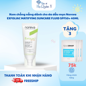 Noreva Exfoliac Matifying Suncare Fluid SPF50+ là sản phẩm chống nắng phổ rộng, phù hợp cho làn da dầu. Công thức dịu nhẹ giúp hỗ trợ kiểm soát bã nhờn & bảo vệ da trước tác động từ môi trường.