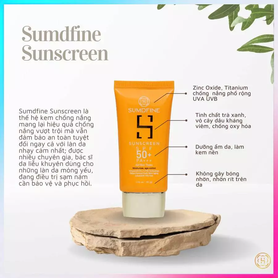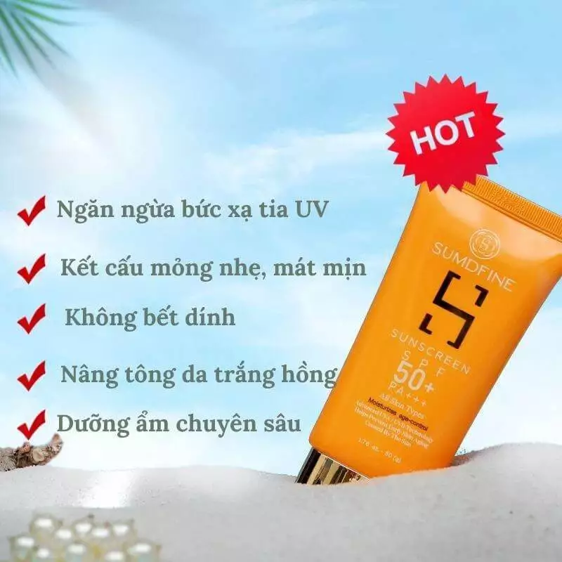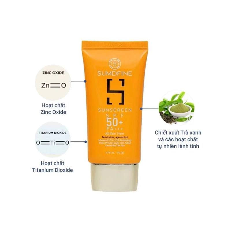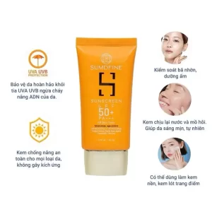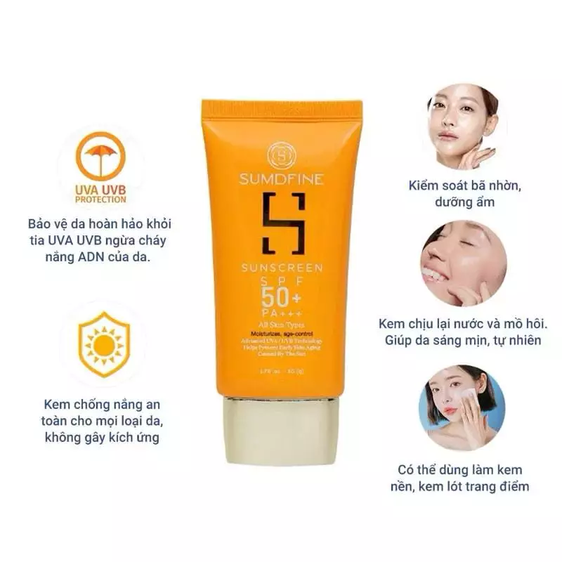 Kem chống nắng SumDfine Sunscreen Hàn Quốc SPF 50+, PA+++ với công dụng 5 trong 1 thích hợp với mọi loại da, mọi độ tuổi.