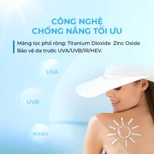 – Khả năng bảo vệ trong thời gian dài: là dòng chống nắng vật lý lai dưỡng – chỉ cần sử dụng 1 lần vào buổi sáng, có thể duy trì tác dụng bảo vệ da trong suốt cả ngày. Trường hợp da phải tiếp xúc trực tiếp với ánh nắng quá nhiều, có thể bôi lại 2–3 lần/ngày để tăng hiệu quả.